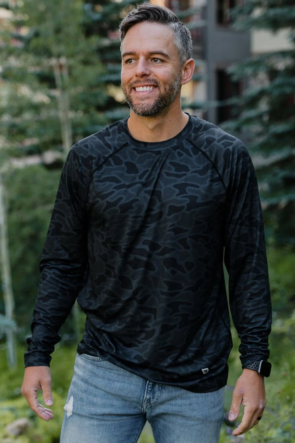 Elevate your activewear game with our Performance Long Sleeve Tee. Crafted from a blend of 91% polyester and 9% spandex, this tee offers exceptional flexibility and durability. It features UPF 50 sun protection, making it ideal for outdoor activities under the sun. The lightweight, performance fabric ensures superior comfort, while its quick-dry, anti-microbial, and moisture-wicking properties keep you fresh and dry during intense workouts or outdoor activities. Designed for a sleek, athletic fit, Russell, who is 5'8" and 165 lbs, is wearing a Size Medium.
