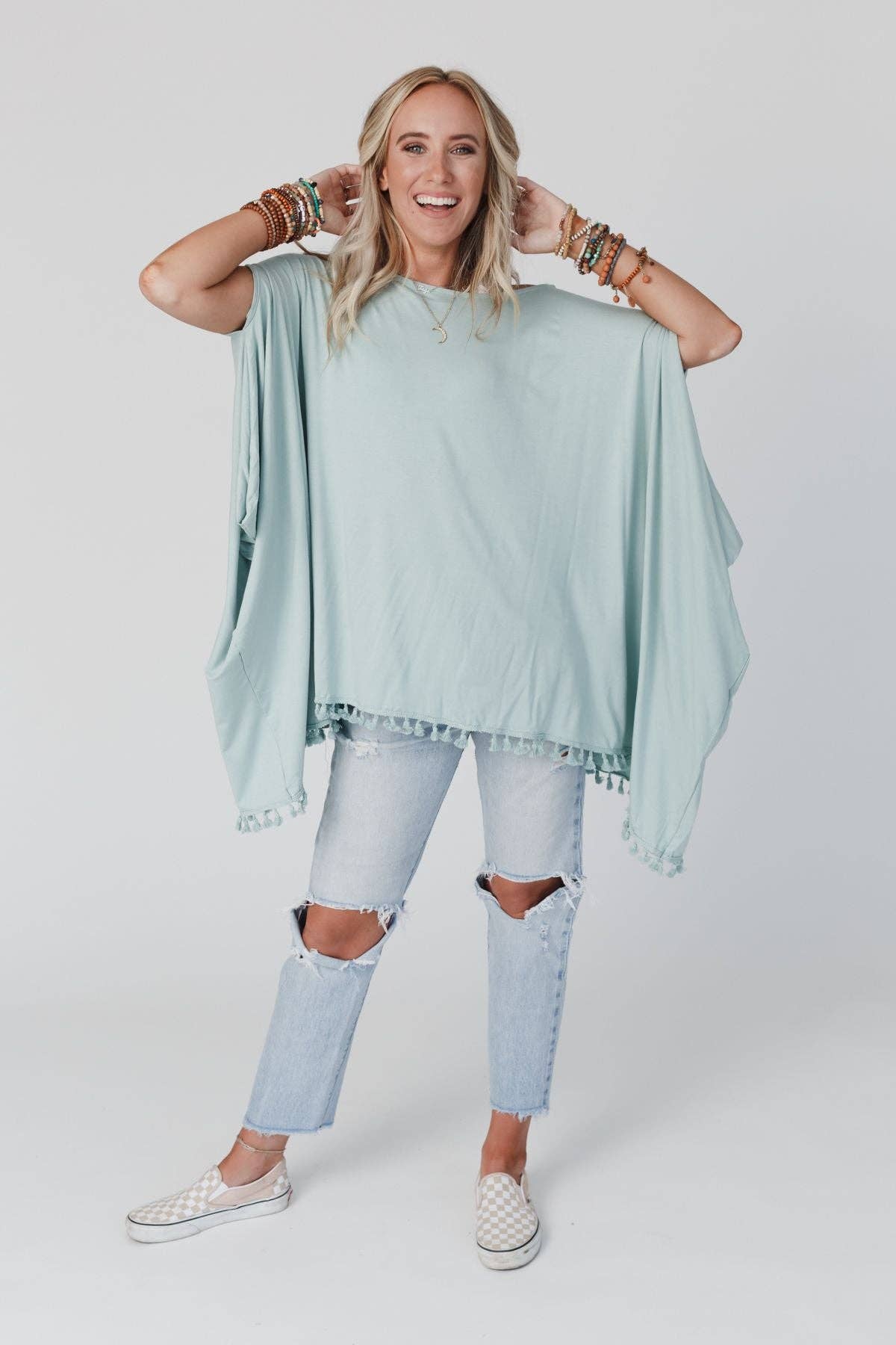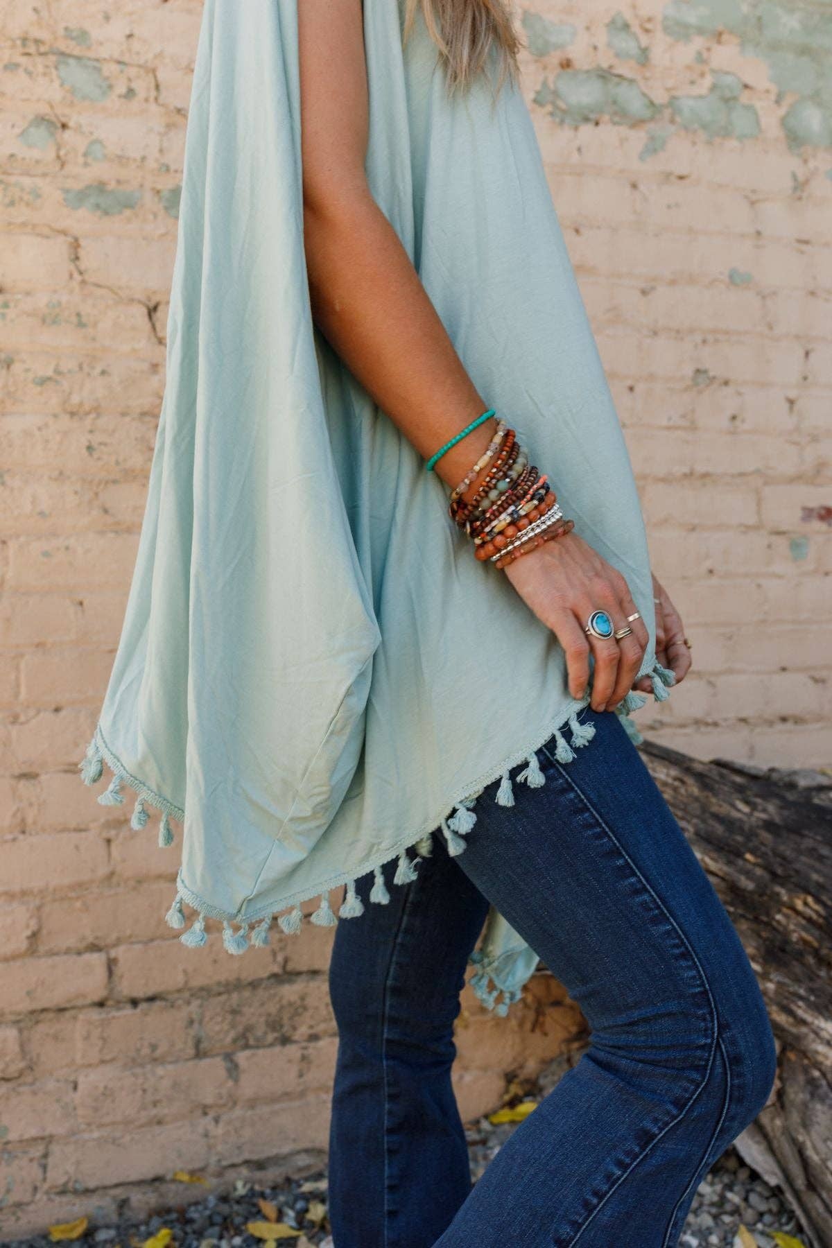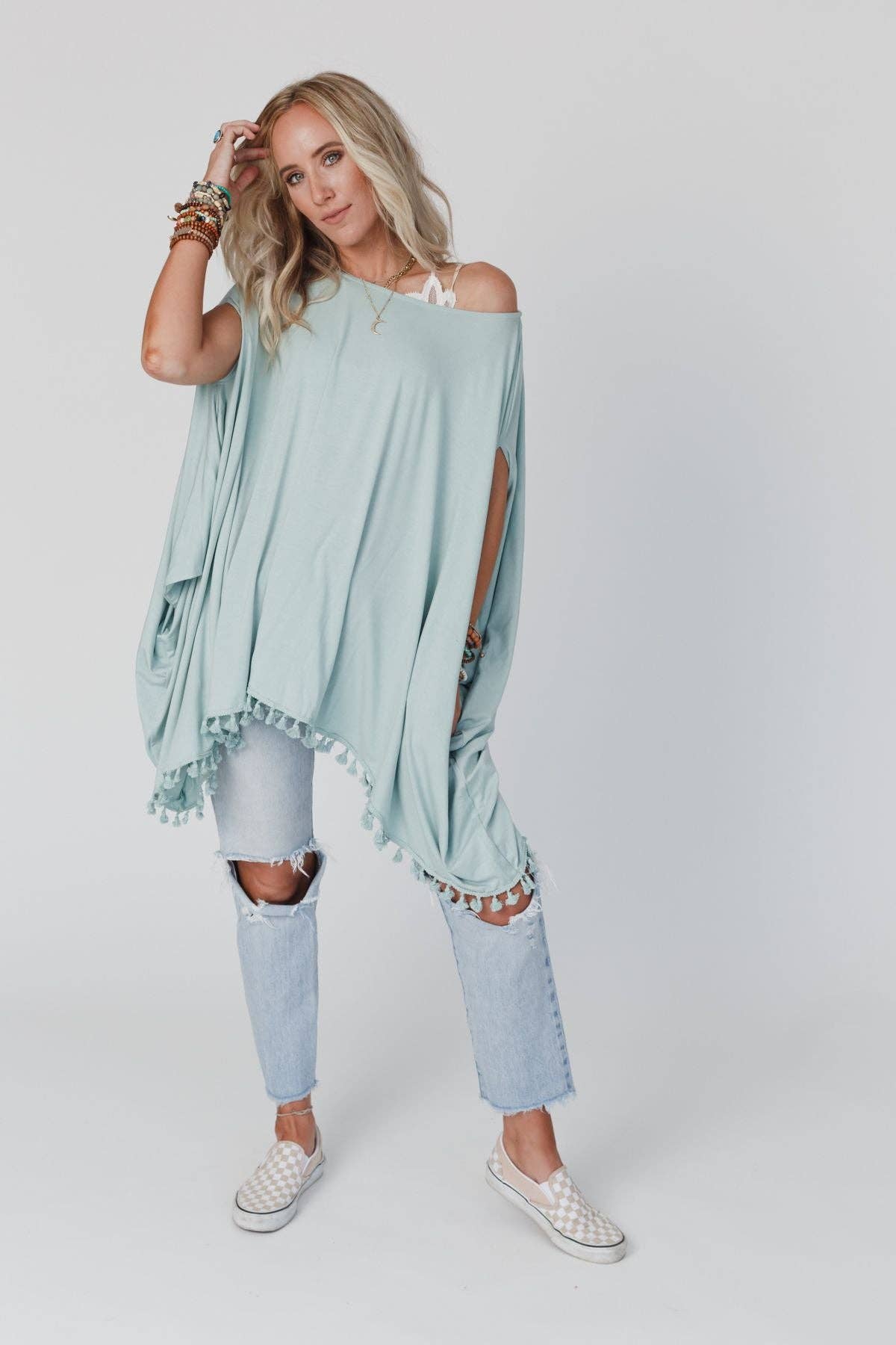 The Wren Tassel Tunic - Seafoam